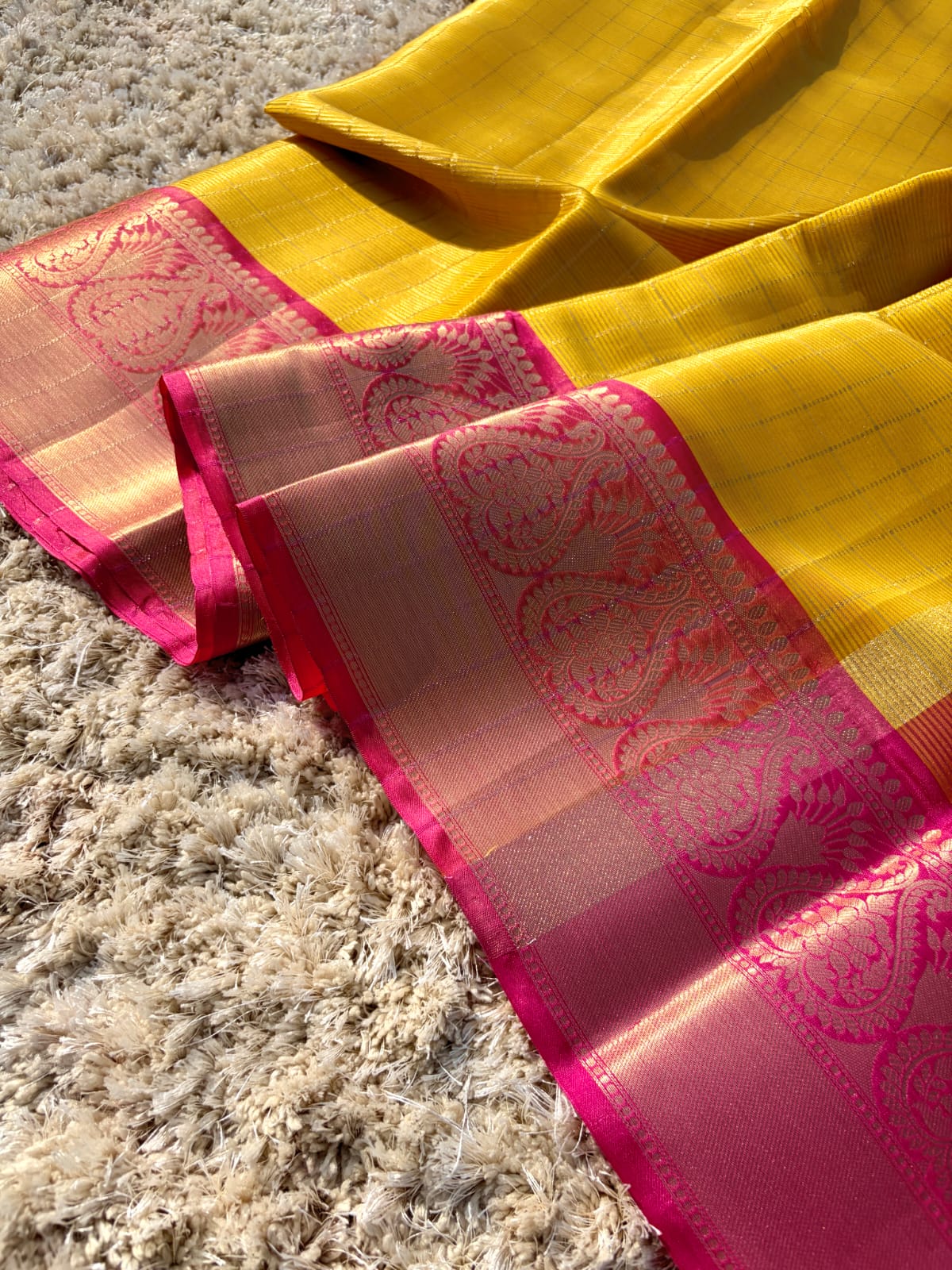 • Contrasting zari border.