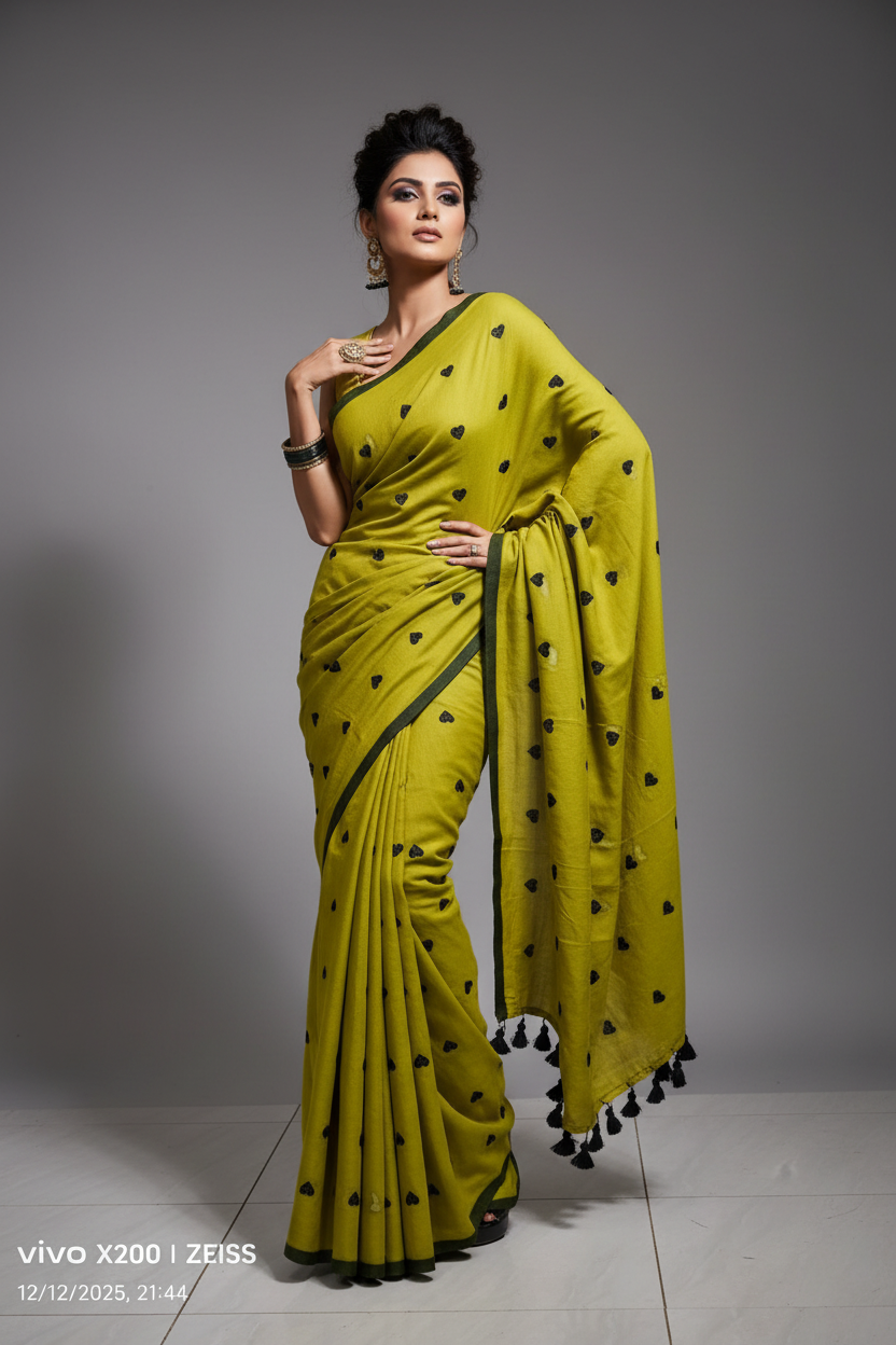 • The displayed model image is AI-generated to demonstrate the saree’s drape and elegance. Actual product color and details may vary slightly. Please review the original product images for precise representation.