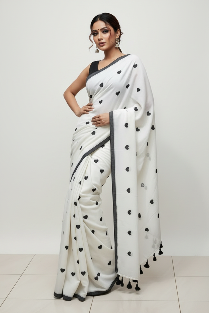 - The displayed model image is AI-generated to demonstrate the saree’s drape and elegance. Actual product color and details may vary slightly. Please review the original product images for precise representation.