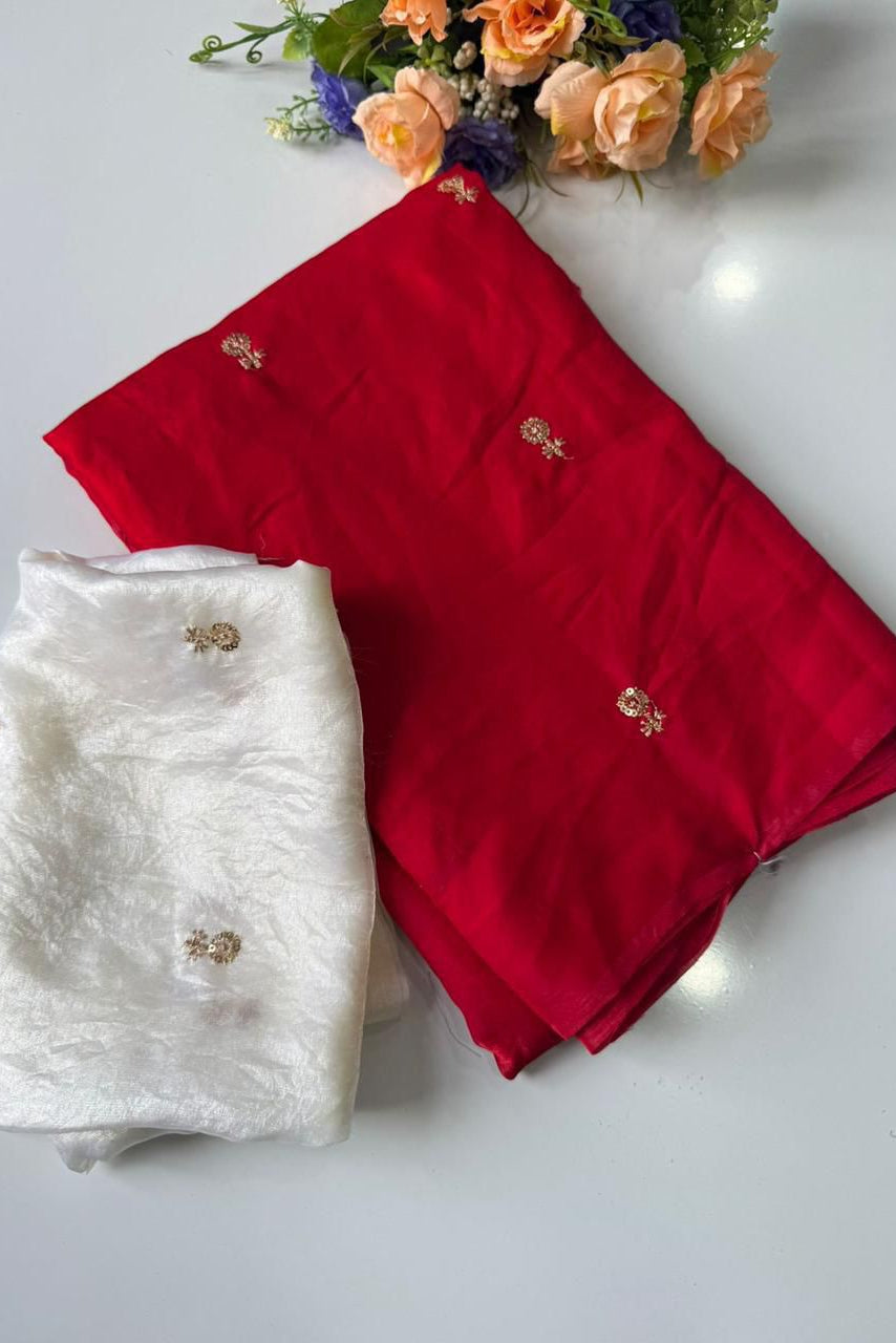 Red Sindoor Saaz Fancy Satin Silk Saree