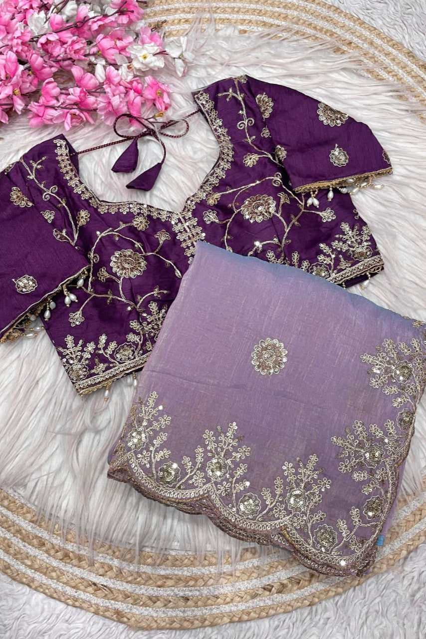 This exquisite Soulmate Vichitra Silk Saree Saree showcases fancy Vichitra silk material and  intricate Embroidery sequins work all over, highlighted by c- pallu work. The luxurious and refined designs extends to the body. The saree is complemented with traditional designs. Elevate your fashion game with this premium and classic saree.