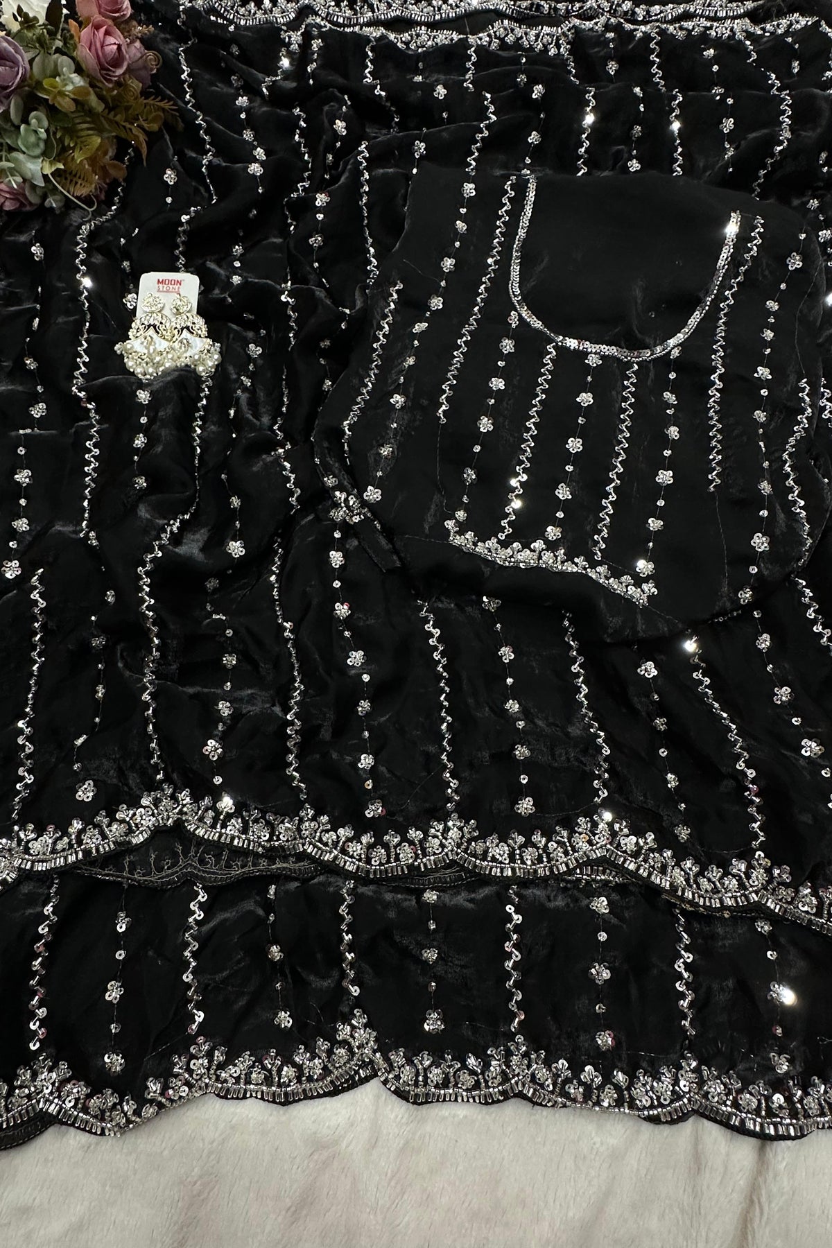 This exquisite Wind’s Embrace Fancy Silk Saree showcases fancy space silk material and  sequins with embroidery work all over, highlighted by stunning color shades. The luxurious and refined beautiful design extends to the border. The saree is complemented with traditional designs. Elevate your fashion game with this premium and classic saree.