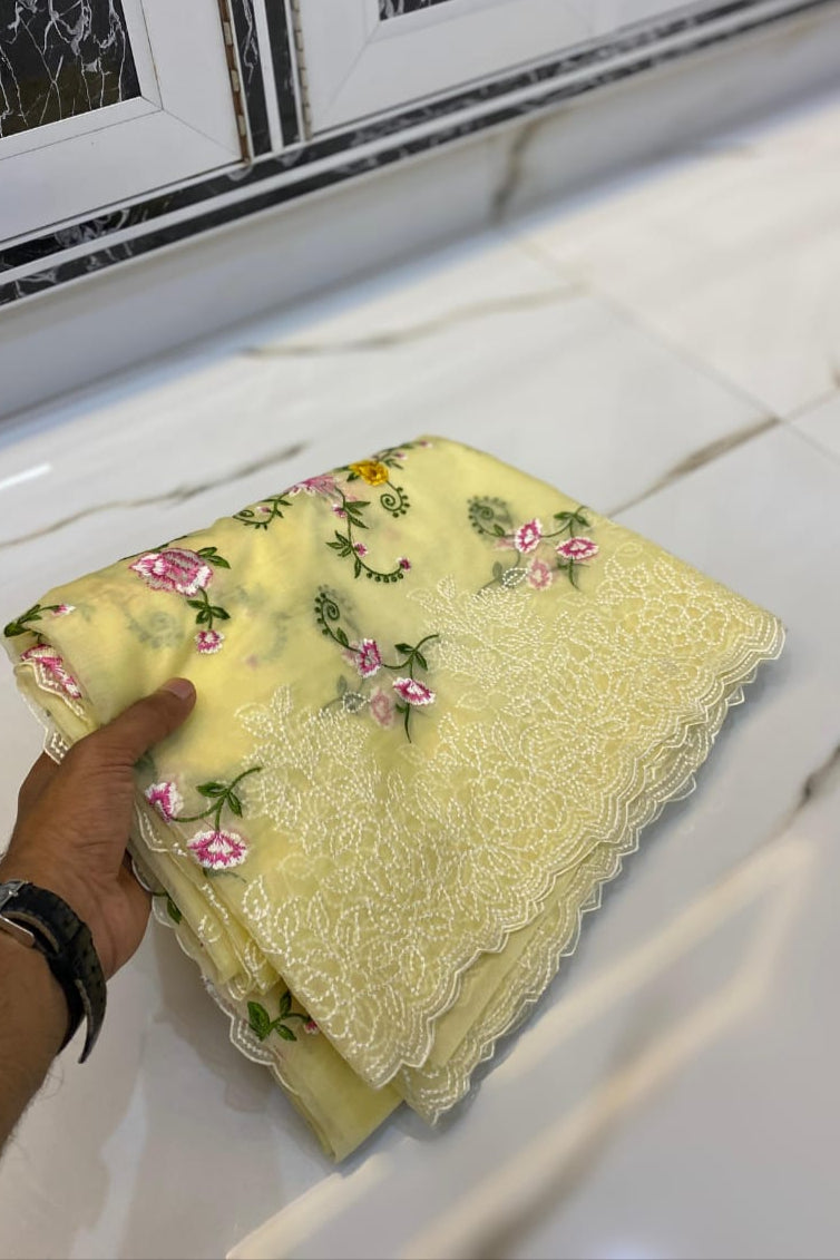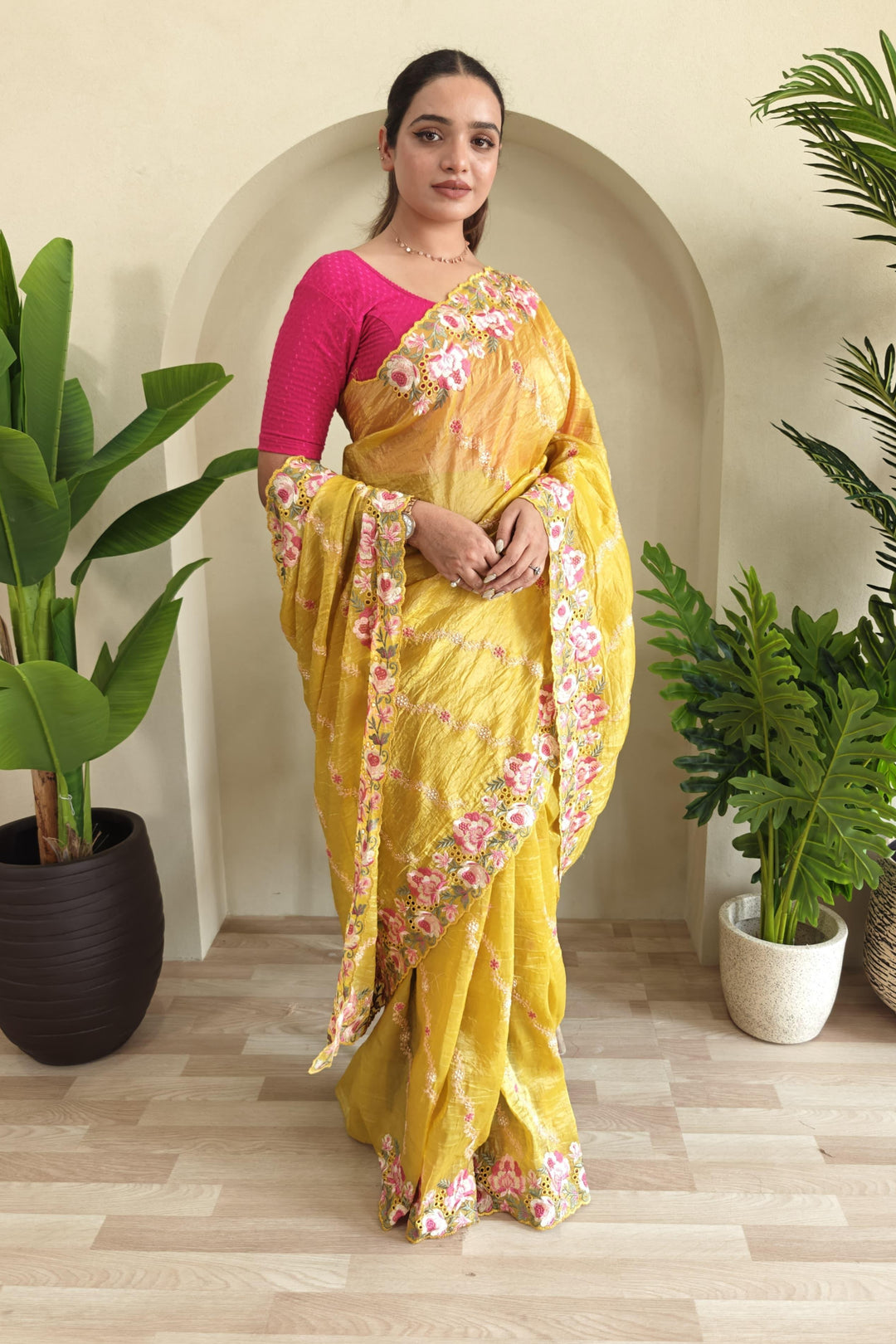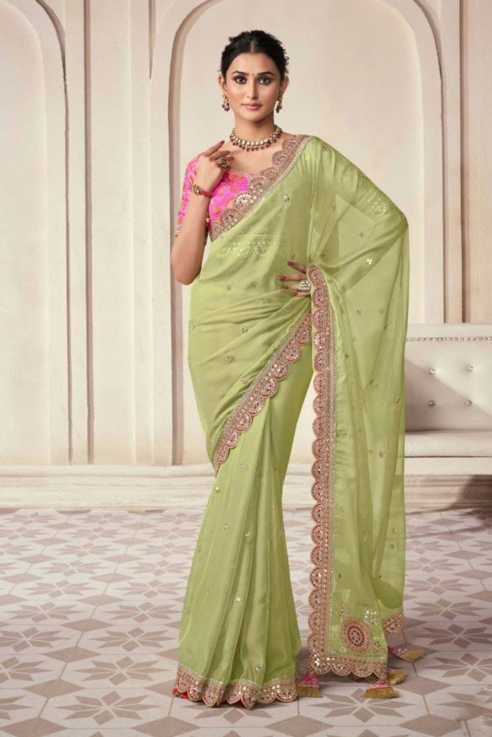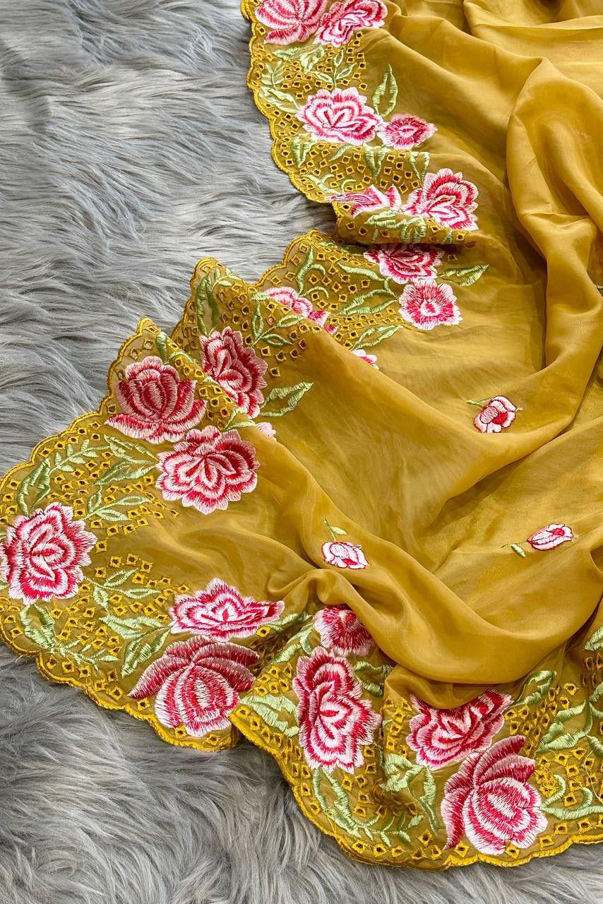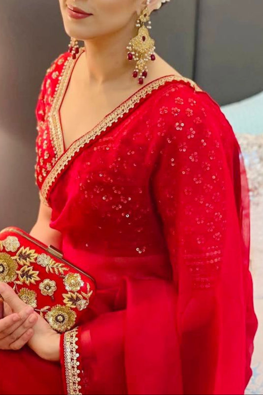 Organza sarees are derived from the name of the unique fabric called organza. It is basically a light weight, plain weave that is purely made from silk. The organza saree holds its own uniqueness due to its classy and elegant look. The organza saree has had such a great impact on the hearts of women that they prefer to wear these sarees at weddings, functions, festivals, parties etc. The presence of different beautiful colors and light-weight fabrics is what makes Organza sarees fit for every occasion. Sarees in organza are a perfect choice for every occasion.