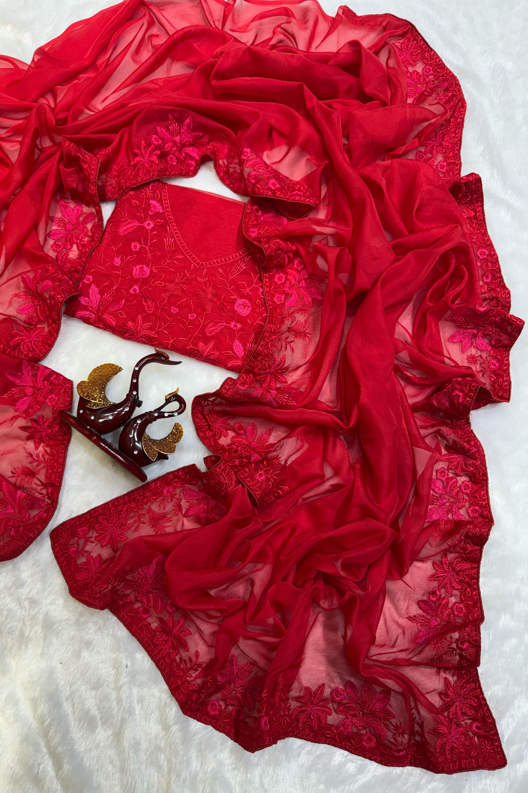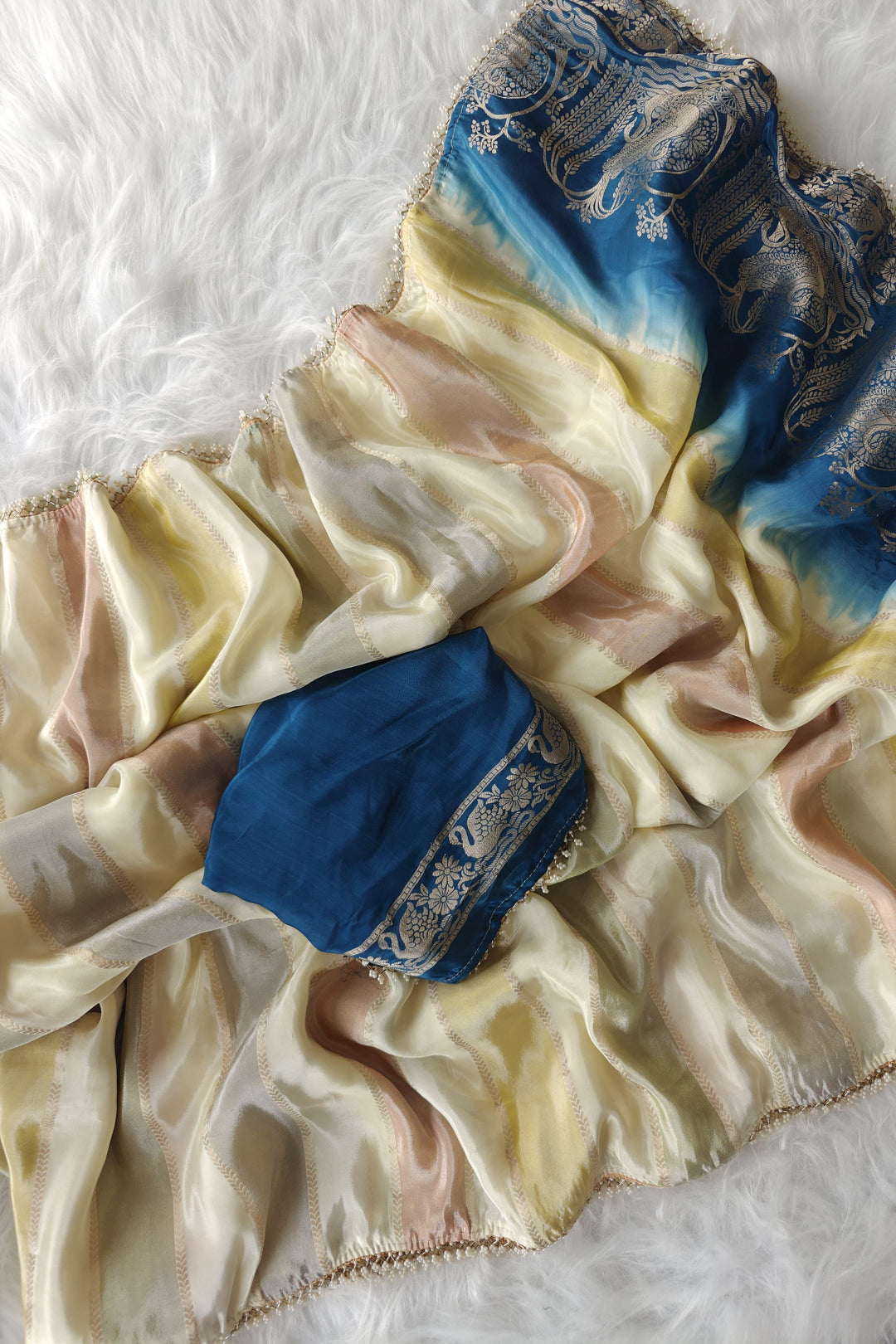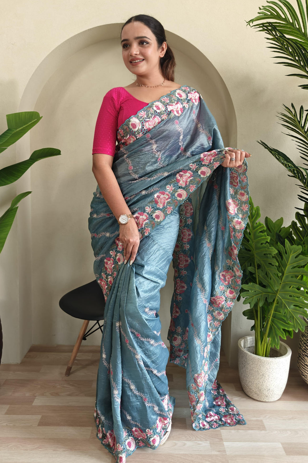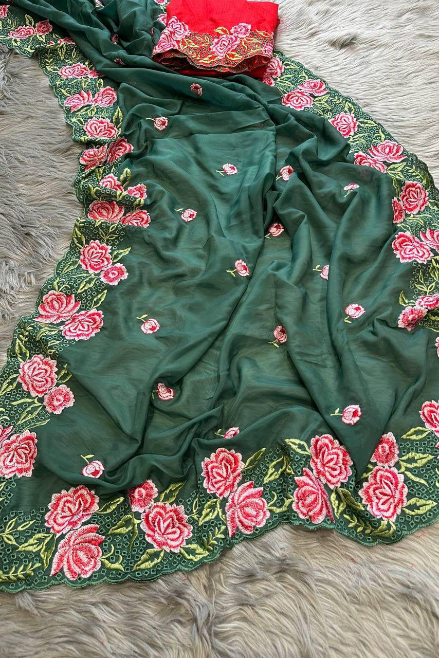 Organza sarees are derived from the name of the unique fabric called organza. It is basically a light weight, plain weave that is purely made from silk. The organza saree holds its own uniqueness due to its classy and elegant look. The organza saree has had such a great impact on the hearts of women that they prefer to wear these sarees at weddings, functions, festivals, parties etc. The presence of different beautiful colors and light-weight fabrics is what makes Organza sarees fit for every occasion. Sarees in organza are a perfect choice for every occasion.
