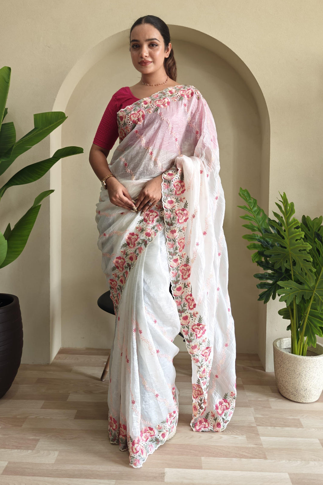 Organza silk is a type of organza saree which is made up of a fusion of traditional and contemporary Indian styles. Organza silk sarees hold heavy zari pallu with a beautiful border which attracts the eye of an individual.
