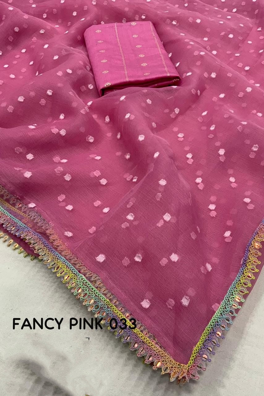 Organza sarees have various patterns and designs. The woman who is in search of a heavy zari pallu and border will definitely love the collection of organza sarees.