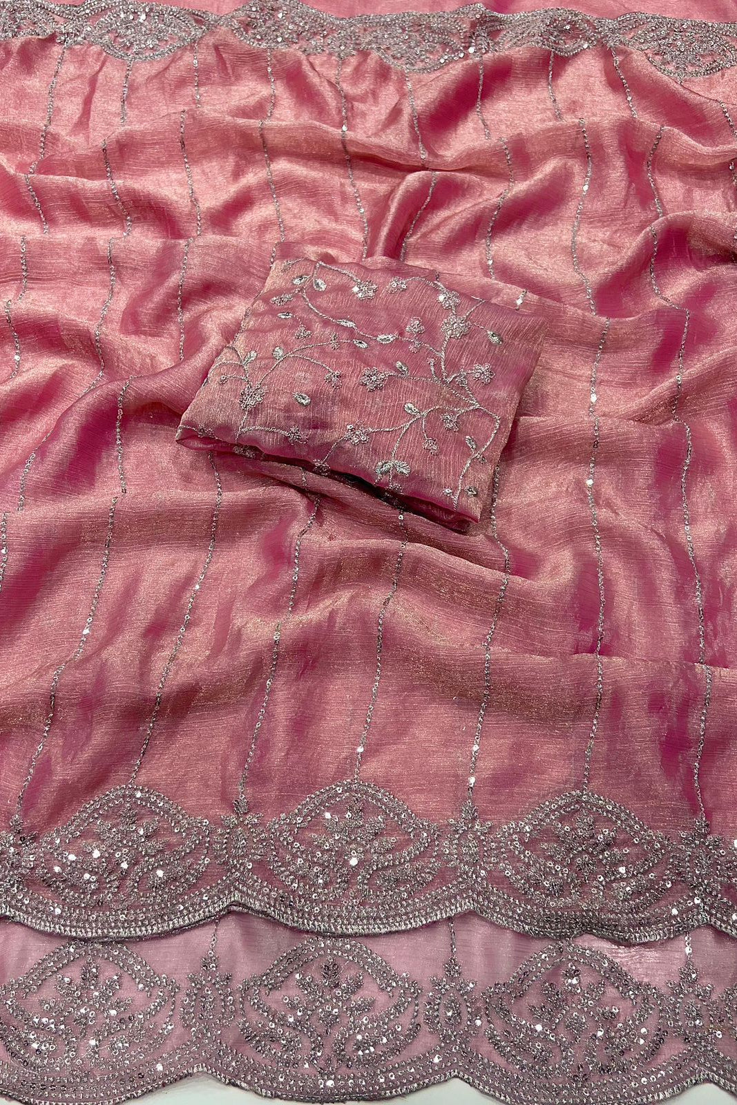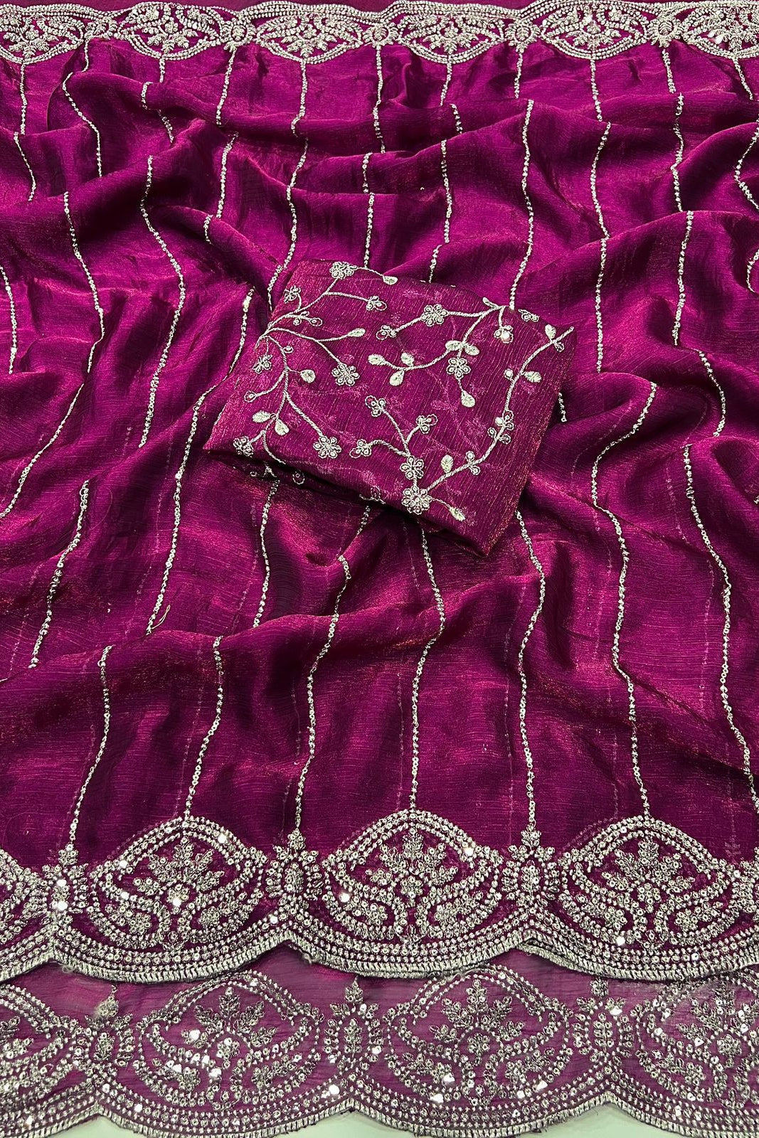 Shaam Rang Designer Partywear Sequins Satin Silk Saree