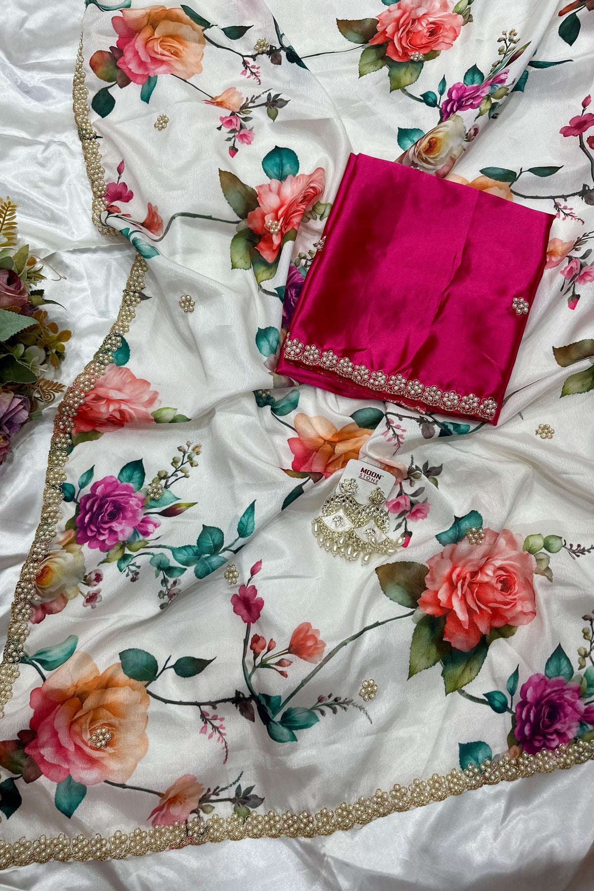 - Blouse fabric:- soft satin silk with embroidery and fancy stone work [ fancy]