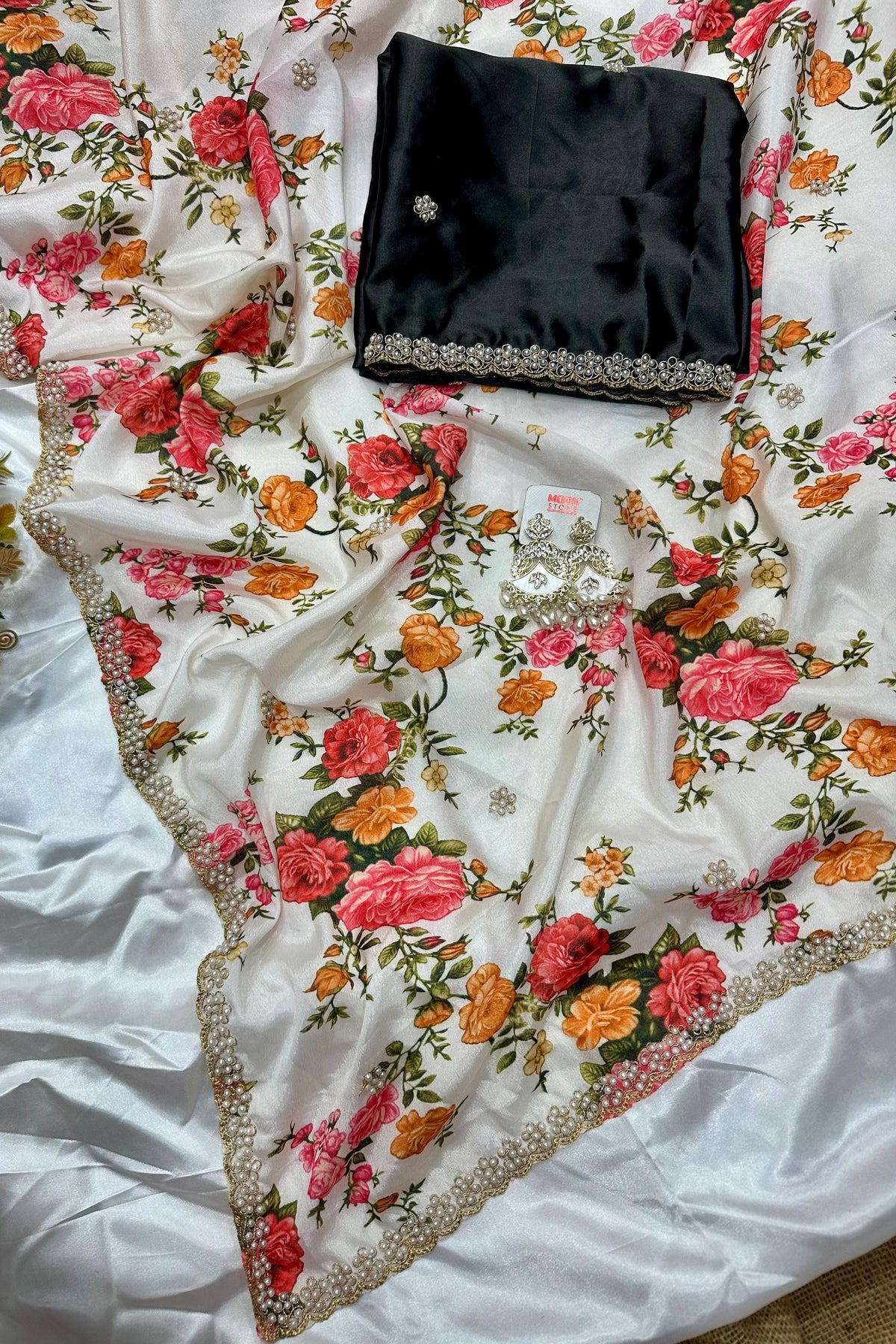 - Blouse fabric:- soft satin silk with embroidery and fancy stone work [ fancy]