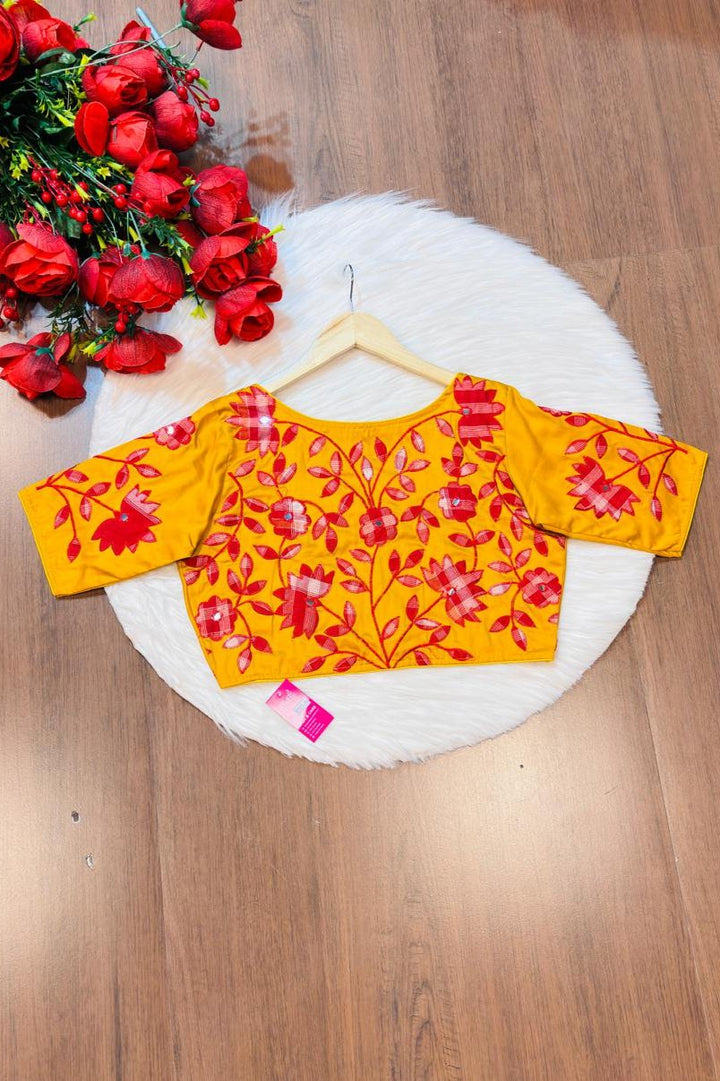 Hurry and snag these savings! Our New Designer Blouse will add a touch of elegance and luxury, made with Cotton material, adorned with intricate Applique and Mirror work. Take your pick from sizes S to XXL - buy it now!