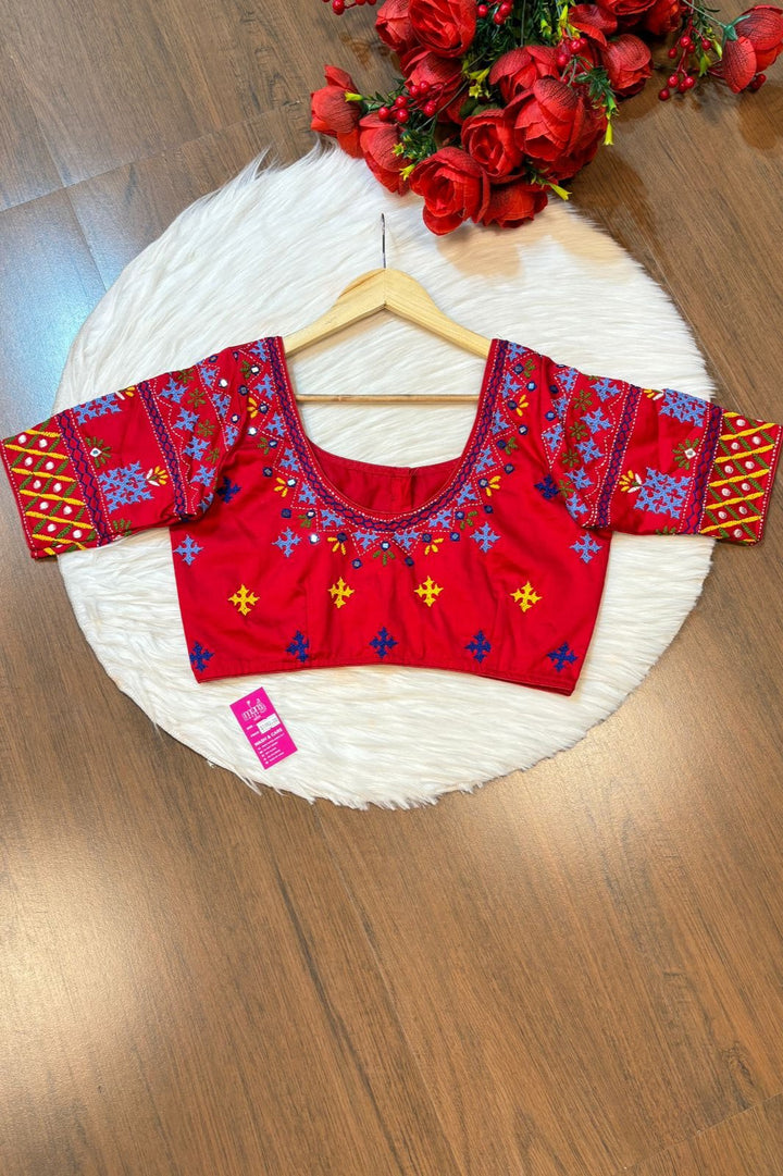 Hurry and snag these savings! Our New Designer Blouse will add a touch of elegance and luxury, made with Cotton material and Silk finish , adorned with intricate Gujrati Embroidery work. Take your pick from sizes S to 3XL - buy it now!