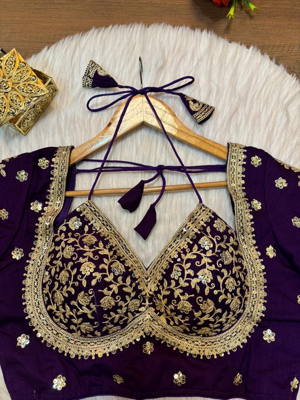 Be ready to stand out in the crowd with the Fancy Designer Blouse! Featuring unparalleled Style , intricate sequins with zari embroidery work, and distinct Style , this Blouse is guaranteed to catch attention. Embrace the latest trends and pay tribute to diverse cultures with this must-have blouse. Its versatility provides a "all in one" experience, great for any event. Don't hesitate, seize these discounts now!