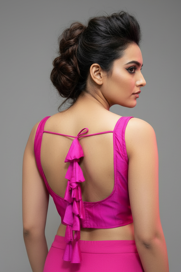 Look no further for the perfect addition to any outfit - our Designer Blouse! A one-of-a-kind design and style make this Blouse the ultimate statement piece. The princess cut and fashionable back add a touch of sophistication to any Saree.