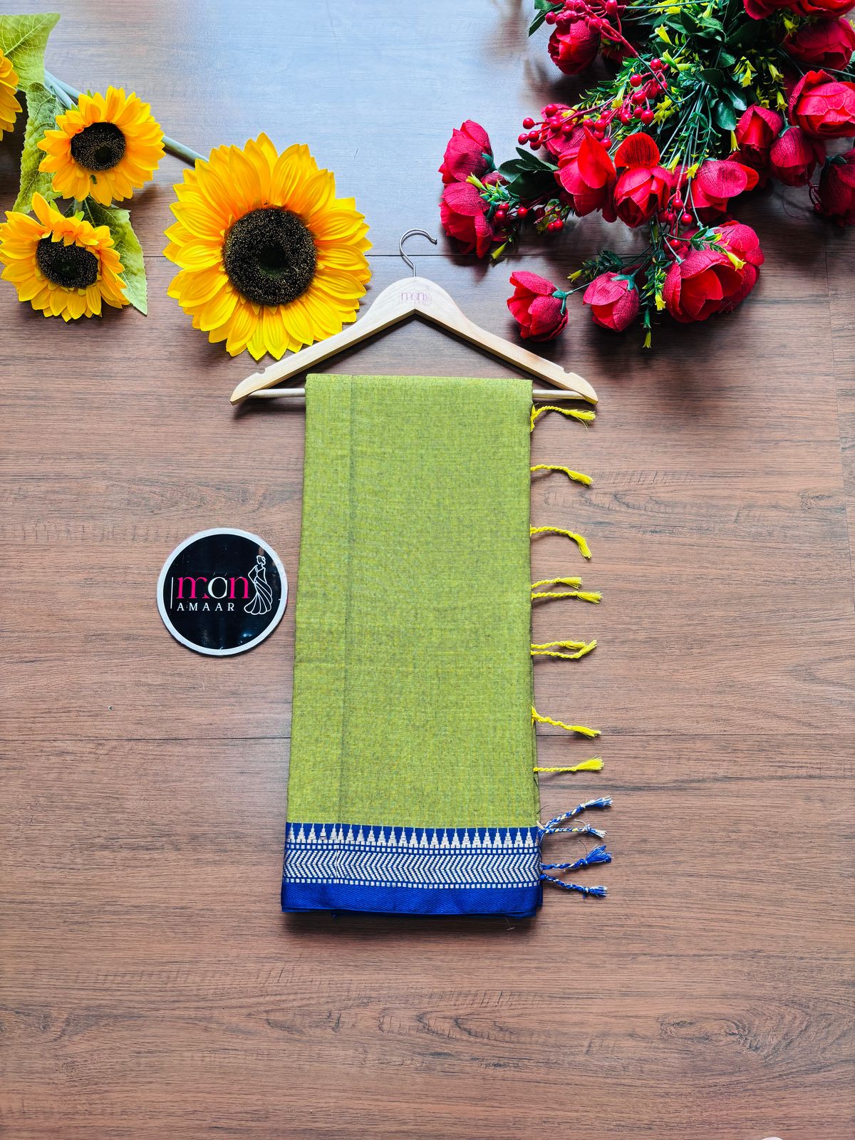 Experience the luxurious feel of pure Khadi cotton draped around yourself in this stylish saree. With its thin border and solid color, you'll create an elegant look that's sure to turn heads everywhere. Indulge your senses and discover the gratifying beauty of this exquisite garment.