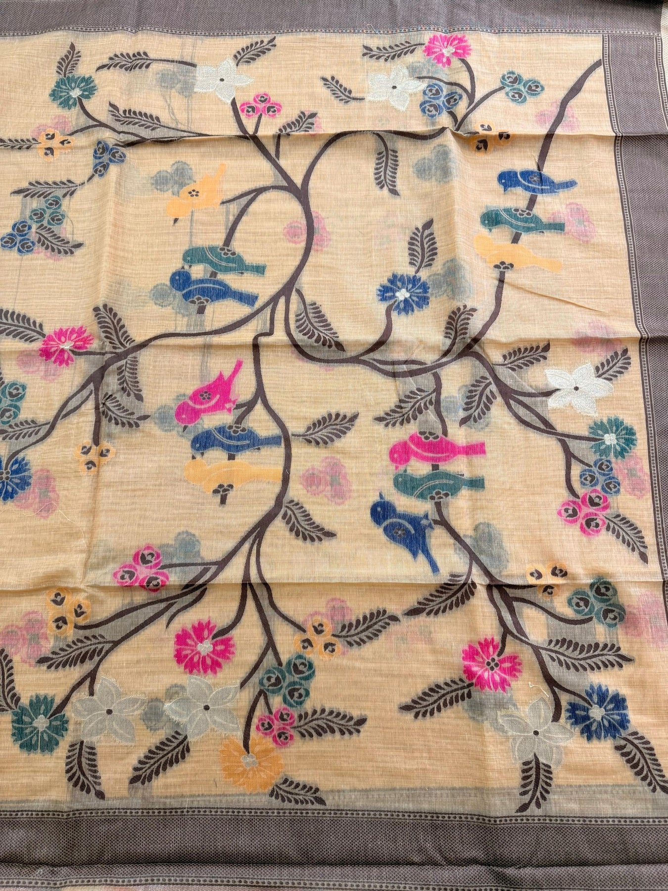 This Dawn of Calm Muga Silk Saree is a luxurious saree that will make you look and feel like royalty. Crafted from Fancy Muga silk fabric, with unique bird design weaving pattern ,this saree will be sure to turn heads. Its exquisite design makes it the perfect addition to any wardrobe.