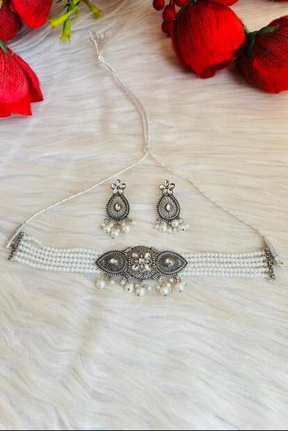 Add a touch of charm and sophistication to any look with our Oxidized Chocker Set! This beautifully crafted piece is perfect for those who want to infuse some sparkle into their attire without breaking the bank. Here's why this set is a must-have: