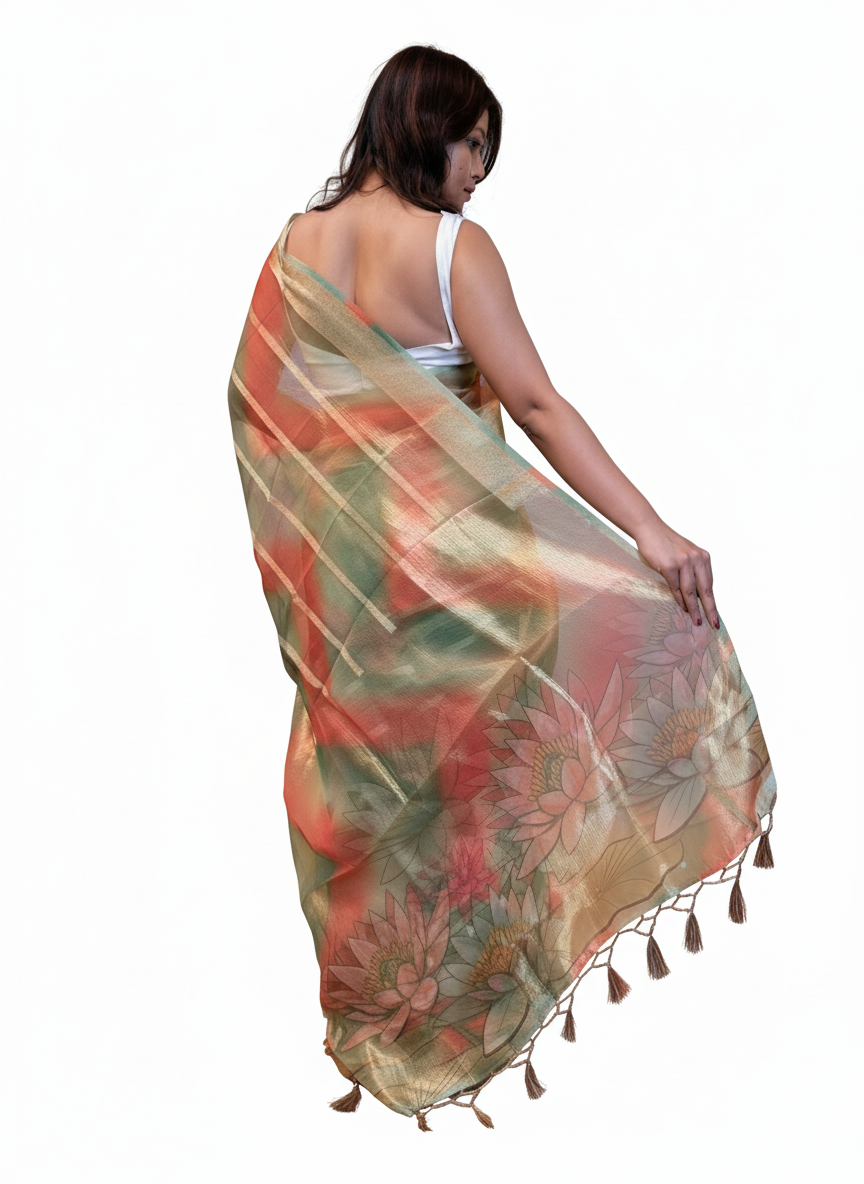 Banarsai Crush Chiffon saree is Known for their soft texture, Banarsai Crush Chiffon sarees are loved by women who crave comfort in their ethnic wear. These sarees are made from fine, high-quality incredibly Banarsai Crush Chiffon silk [ semi] which results in a thin, semi-sheer lightweight fabric that drapes very well. These sarees are perfect for office wear or formal events.
