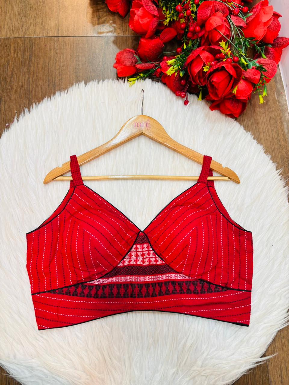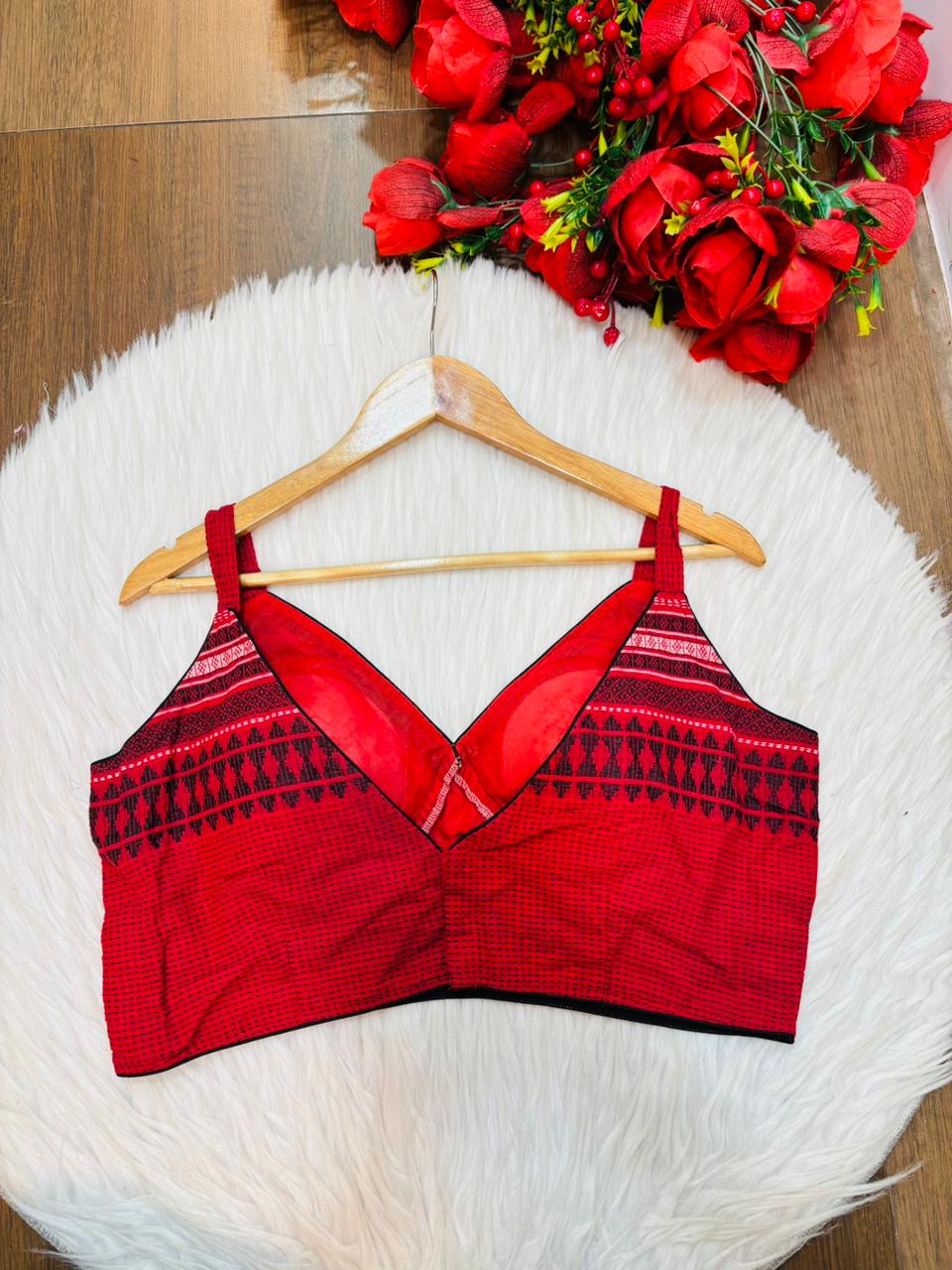 Add a touch of elegance to your saree look with the RongTulika Jamdani Designer Cotton Blouse. Crafted from soft, breathable cotton fabric, this sleeveless blouse features beautiful Jamdani-inspired patterns that blend traditional Bengali artistry with modern design.