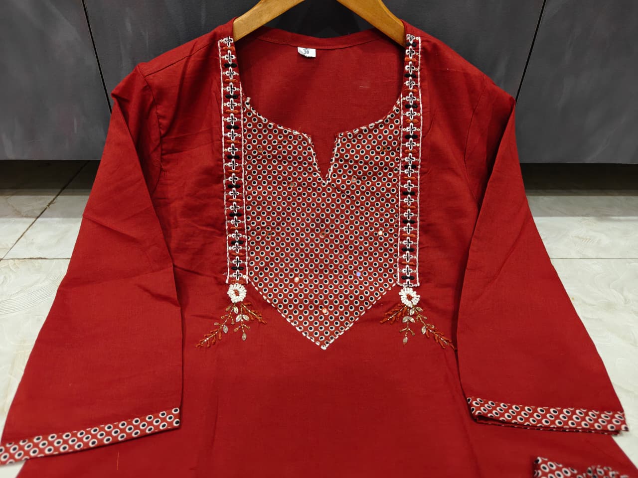 Introducing our soft Cotton Kurti Set a timeless classic for versatile elegance. This stunning Kurti set features likes embroidery work that is trendy and gorgeous. Made with high-quality cotton 60/60 , this set is not only cool but also comfortable to wear. Elevate your style game with this must-have set!