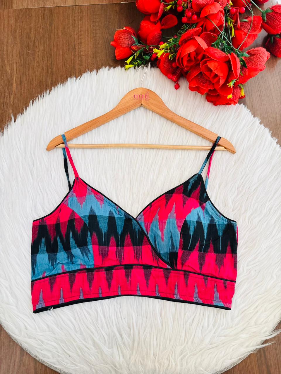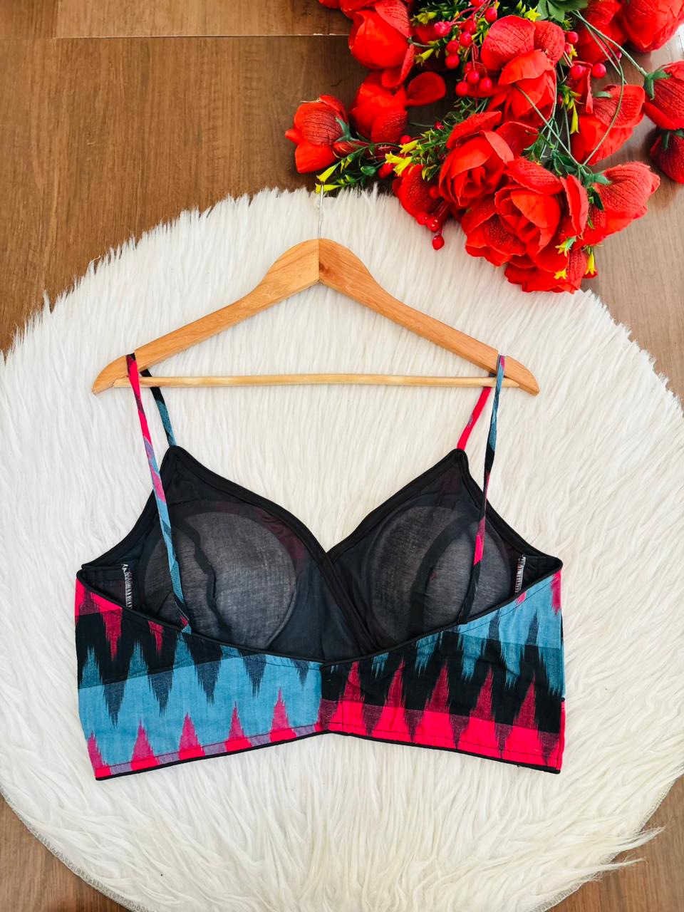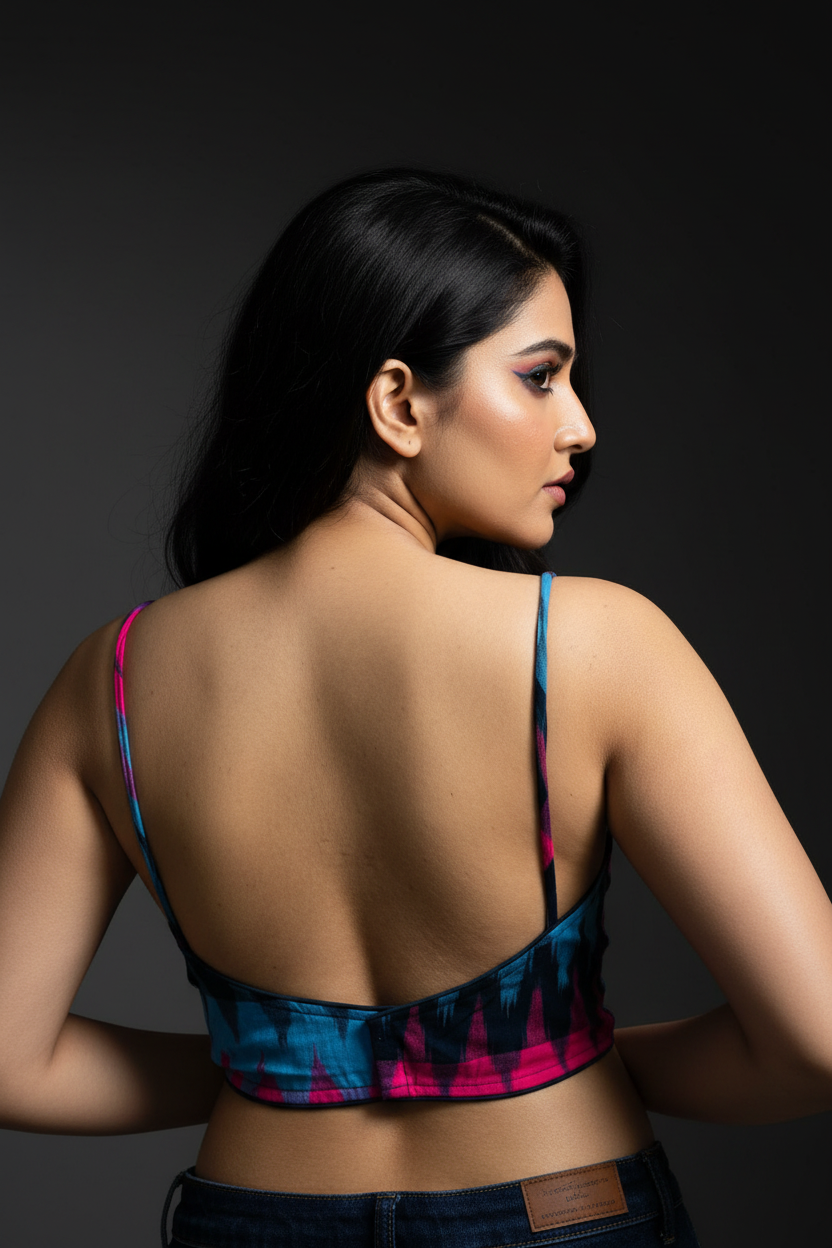 Hurry and snag these savings! Our New Designer Blouse will add a touch of elegance and luxury, made with Premium Cotton, adorned with intricate Color and Ikkat print. This fancy designer blouse will elevate your wardrobe with fancy neck design . Perfect for any occasion, this blouse brings a touch of elegance to your style.