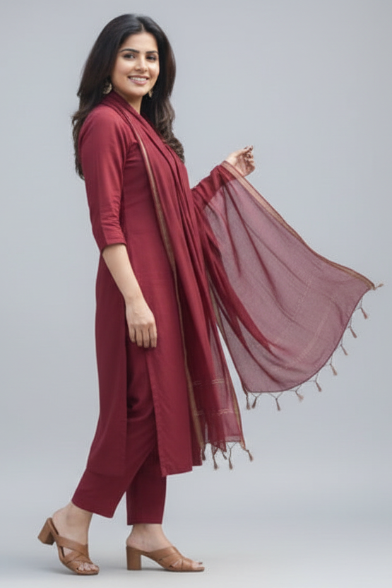 New launch 💃Kurti - set for summer 3p sets ( cotton kurti pant and kota doriya dupatta ) very simple and sophisticated look Pant has one side Pocket When it comes to comfort and style no one can beat look stylish and walk in comfort with our new summer Kurti SET , perfect for your wardrobe Stylish neck with long sleeves beautiful set in classy LOOK ! Wear it with confidence and feel amazing! It is Light , Non transparent anyone can carry it easily : breathable Best for summer , office look and more Cool and stylish Size: M to 3XL Top length : 46 inch or 116.84 cm approx. Length of Dupatta :-2.3 mtr approx. Pant length: 38 inch or 96.52 cm approx.